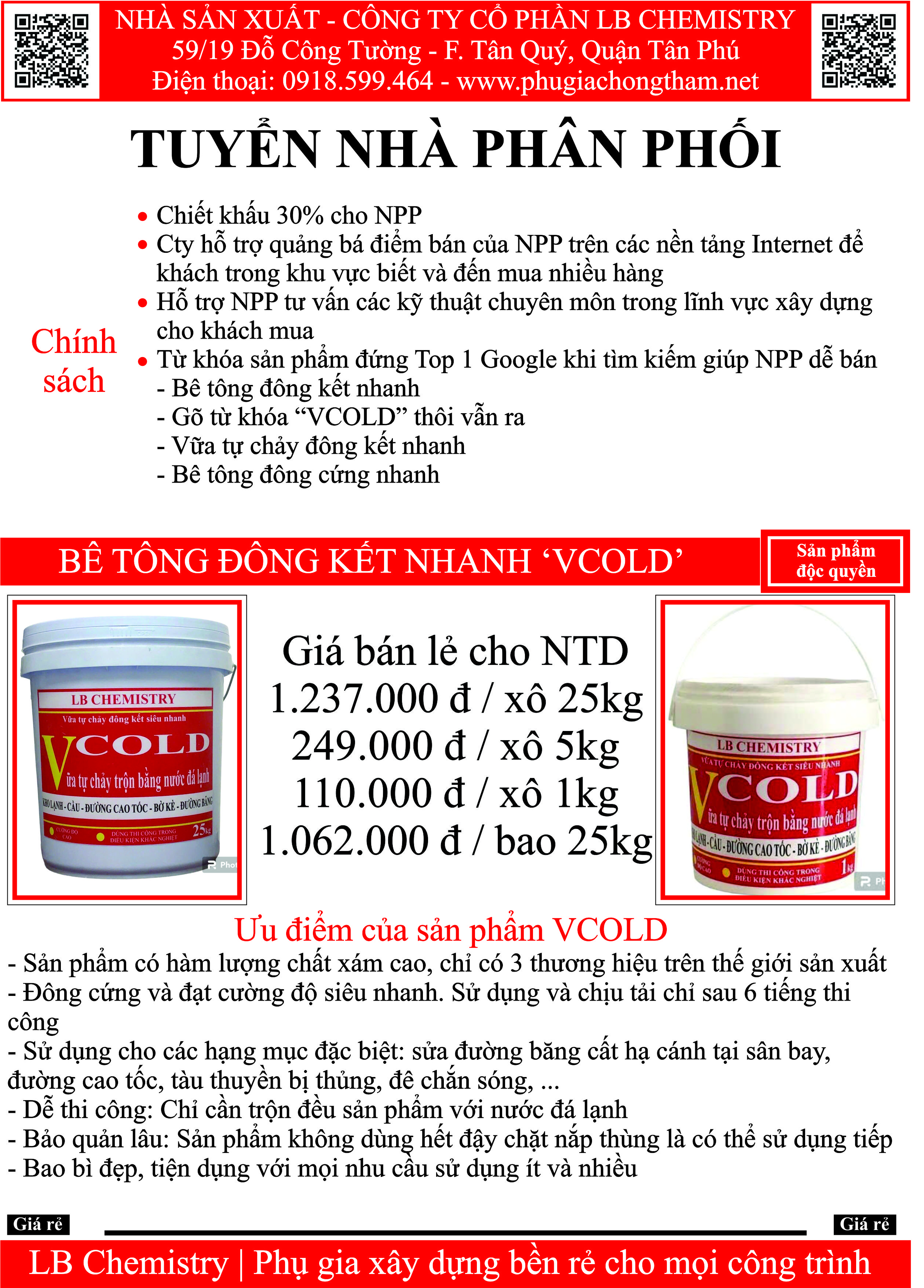 Việc 1: Nhanh tay đăng ký làm NPP với Cty LB Chemistry